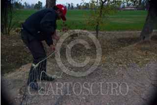 QUERÉTARO, QUERÉTARO, 27NOVIEMBRE2010.- Trabajadores de las propiedades del ex senador y ex candidato a la presidencia de la república, Diego Fernández de Cevallos, desmintieron esta mañana la versión que publicó un medio de circulación nacional de que el abogado había sido liberado de su cautiverio. Las hermanas del también panista confirmaron a medios locales de Querétaro que no han tenido conocimiento de la aparición de su hermano Diego. En la imagen trabajadores esta mañana en el rancho La Cabaña, donde fué secuestrado hace seis meses. FOTO: DEMIAN CHAVEZ/CUARTOSCURO.COM