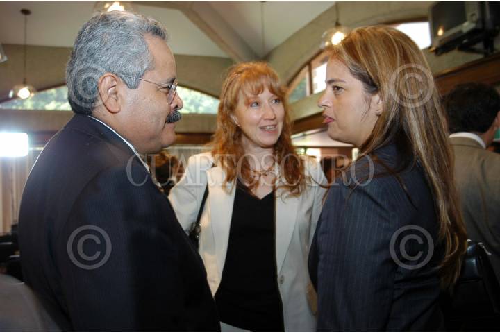 MEXDF12MAYO2004.- Javier Santiago presidente del IEDF, Rosa Maria Mirón y Lorena Villavicencio asambleista perredista, conversan despues de la firma un convenio para el diseño de una urna electrónica entre el IEDF y la UAM, ITESM y IPN. FOTO: Germán Romero/CUARTOSCURO.COM