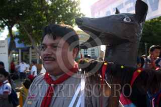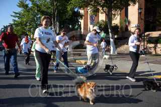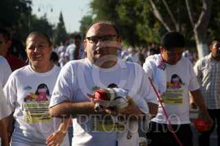 MERIDA, YUCATÁN, 28NOVIEMBRE2010.- Decenas de personas acompañados de sus canes salieron del remate de Paseo Montejo para la caminata "actívate con tu perrito" que promueve la alcaldesa Angélica Araujo Lara, quien recorrió la principal avenida de la ciudad a lado de su perrita hasta llegar al monumento a la bandera y observar una demostración del trabajo en seguridad que realizan los canes de la SSP. FOTO: FRANCISCO BALDERAS/CUARTOSCURO.COM