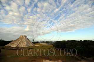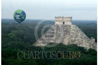 CHICHEN ITZÁ, YUCATÁN, 28NOVIEMBRE2010.- Fotografía aérea del globo aerostático en el que la organización ambientalista Greenpeace exhortó a los participantes en la Cumbre Climática a que ¨recaten el clima" FOTO: LUIS PEREZ/GREENPEACE/CUARTOSCURO.COM