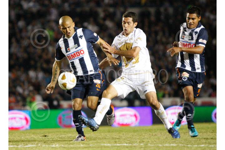 MONTERREY, NUEVO LEON, 28NOVIEMBRE 2010.- Rayados de Monterrey, vence con marcador de 2-0 a los Pumas de la UNAM, para eliminar a los universitarios y avanzar a la gran final ante Santos Laguna, en el torneo Centenario 2010. Darío Verón y Marco Antonio Palacios añ finalizar el partido. FOTO: PEDRO KRISTIAN LÓPEZ/CUARTOSCURO.COM