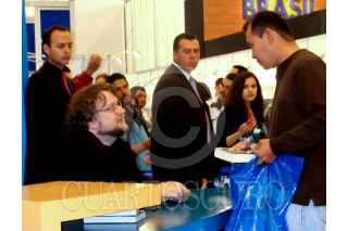 GUADALAJARA, JALISCO, 29NOVIEMBRE2010.- El cineasta mexicano, Guillermo del Toro, presentó el día de ayer su segunda novela titulada "Oscura" en el marco de la Feria Internacional del Libro de Guadalajara. FOTO: GABY MARCIAL/CUARTOSCURO.COM