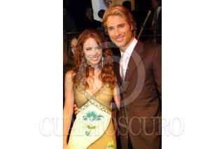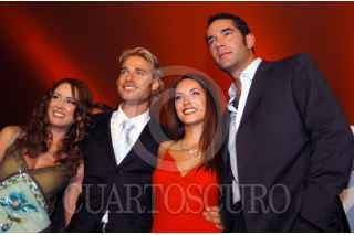 MEXDF13MAYO2004. Durante la presentación del elenco de la telenovela " Rubi", la actriz Barbara Mori le dio un beso en los labios a sus campañeros Sebastian Rulli y Eduardo Santamarina. FOTO: Germán Romero/CUARTYOSCURO.COM
