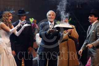 PACHUCA, HIDALGO, 01DICIEMBRE2010.- La obra de teatro "Perfume de Gardenia" estelarizada por Araceli Arambula, Julissa, Niurka, Benito Castro, Alejandro Suarez y Julio Alemán, se presentó con gran éxito en Pachuca. Al termino de la función se celebró con un pastel al actor Julio Aleman. FOTO: CAROLINA RAMIREZ/CUARTOSCURO.COM