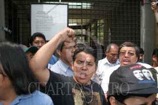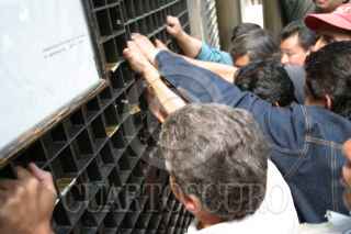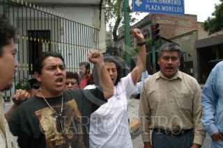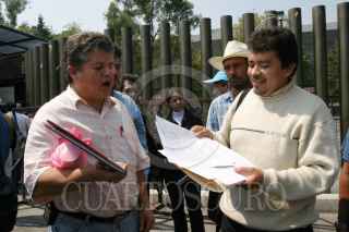 México, D. F. 13 Mayo 2004.- Sergio Espinal García, secretario de la sección 18 de Michoacán y Artemio Ortiz Hurtado, director de política nacional muestran el pliego petitorio, de la Coordinadora Nacional de Trabajadores de la Educación pretendián entregar a la comisión de educación de la cámara de diputados. FOTO: Nelly Salas/CUARTOSCURO.COM
