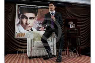 MÉXICO, D.F., 02DICIEMBRE2010.- El cantante mexicano quien saliera del programa la Academia, Victor Garcia, ofreció una conferencia ante los medios de comunicación para dar los pormenores de su nueva producción musical titulada "Amorcito Corazón" la cual le hace un homenaje al cantante e ídolo de los mexicanos, Pedro Infante. FOTO: ENRIQUE ORDÓÑEZ/CUARTOSCURO.COM