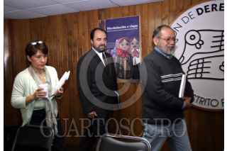 México, D. F. 13 Mayo 2004.- Rocio Culebro, secretaria técnica de la CDHDF, Emilio Alvarez Icaza, presidente de la CDHDF y David Velazco, presidente del centro de derechos humanos Miguel Agustín Pro Juárez previo a la presentación del manuel "Discriminación a ciegas". FOTO: Nelly Salas/CUARTOSCURO.COM