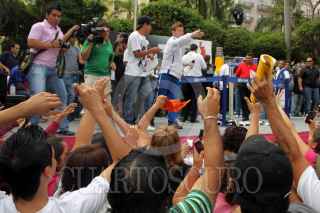 BOCA DEL RÍO, VERACRUZ, 03DICIEMBRE2010.- Oscar de la Hoya, promotor de box se dio cita en la Ceremonia de pesaje de la pelea denominada "Fiesta en Veracruz", entre Saúl "Canelo" Alvarez contra Lovemore Ndou por el campeonato mundial Plata en la categoría Súper Welter del Consejo Mundial de Boxeo. FOTO: MARCO POLO GUZMÁN HERNÁNDEZ/CUARTOSCURO.COM