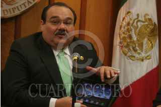 MÉXICO, D.F., 03DICIEMBRE2010.- Jorge Carlos Ramírez Marín Diputado del PRI y Presidente de la Mesa Directiva, realizó la presentación del Infopal Móvil en la Cámara de Diputados para un dispositivo tipo tableta (IPad) con el que se pretende reducir el gasto y consumo de papel en San Lazaro. FOTO: ENRIQUE ORDÓÑEZ/CUARTOSCURO.COM