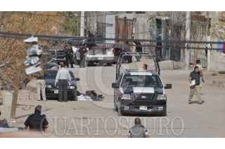 CIUDAD JUAREZ, CHIHUAHUA, 04DICEIMBRE2010.- Cuatro 4 agentes de la Policía Municipal fueron acribillados esta tarde. El ataque se registró a la una de la tarde del dia, en el cruce de las calles Acamapiztle y Cuauhtlatoatzin en la colonia Águilas de Zaragoza. Se dijo que los agentes fueron emboscados cuando viajaban en la unidad 371, realizando patrullajes por el sector en mención. En el lugar de los hechos quedaron los cuerpo de los cuatro agentes, uno más quedó gravemente herido, además se informó que varios civiles inocentes fueron alcanzados por balas perdidas. FOTO: NACHO RUIZ/CUARTOSCURO.COM