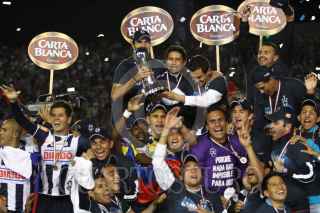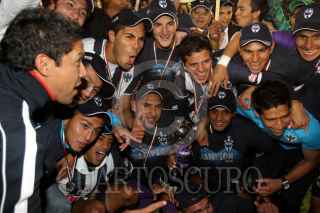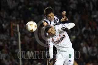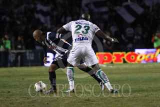 MONTERREY, NUEVO LEÓN, 05DICIEMBRE2010.- Carlos Morales del Santos Laguna remata el balón durante el encuentro de la gran final ante los Rayados del Monterrey del torneo Apertura 2010 que se realizo en el estadio Tecnológico. Rayados ganó 3 goles por 0 (global 5 - 3) coronándose campeón del Torneo Apertura. FOTO: RODOLFO ANGULO/CUARTOSCURO.COM