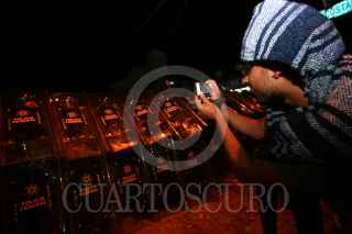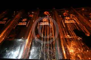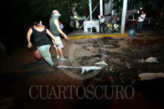 CANCÚN, QUINTANA ROO, 06DICIEMBRE2010.- Un grupo de manifestantes realizó pintas y tiró basura y excremento a los policías federales que les detenían el paso cuanto intentaron llegar a la Profepa esto en el centro de la ciudad de Cancún. FOTO: AMARANTA PRIETO/CUARTOSCURO.COM