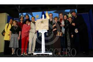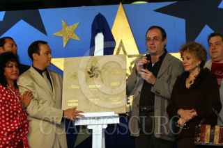 México, D. F. 14 Mayo 2004.- Ernesto Dalesio, Kipi Caso y Morris Gilbert durante la develación de una placa por Cinco Mil representaciones con siente obras. FOTO: Nelly Salas/CUARTOSCURO.COM