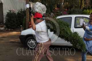 MÉXICO, D.F., 07DICIEMBRE2010.- Desde 1976 y próximo a cumplir 35 años de su instalación, la exposición permanente Unión Regional de Floricultores Viveristas de Xochimilco o popularmente conocido como "Mercado de la Madre Selva o del Bosque de Nativitas", ubicado en la avenida Madre Selva en el Barrio de Xatolcan en la delegación Xochimilco. Alrededor de 500 locatarios establecidos durante todo el año ponen a la venta desde la planta más pequeña que llega a costar cinco pesos, hasta el árbol de navidad más grande y de exportación que llega a los mil pesos. Para estas épocas de fiestas decembrinas, el aumento de la venta de Noche Buena y de Árboles de navidad es lo que más se vende según comerciantes de este tradicional mercado popular. FOTO: MISAEL VALTIERRA/CUARTOSCURO.COM