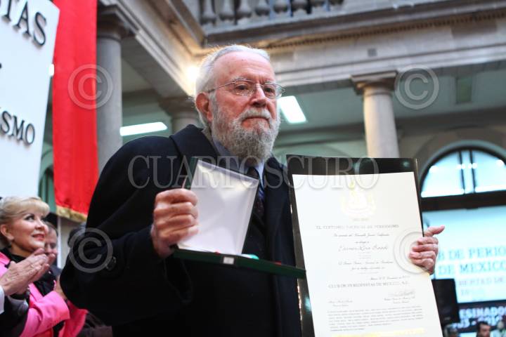 MÉXICO, D.F., 08DICIEMBRE2010.- Miguel Cantón Zetina, director editorial del Grupo Cantón, recibió el premio nacional de periodismo del XL Certamen Nacional de Periodismo, que le fue entregado a el periódico Tabasco Hoy por su cobertura de nacional durante las inundaciones que asolaron a esta entidad a lo largo de 38 días, en el Club de Periodistas. FOTO: MOISÉS PABLO/CUARTOSCURO.COM