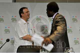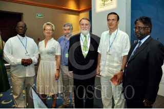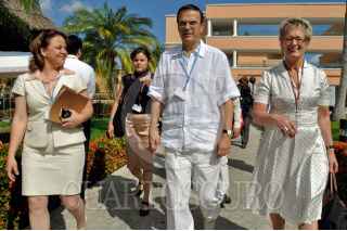 CANCÚN, QUINTANA ROO, 08DICIEMBRE2010.- Marcelo Ebrard Casaubon Jefe de Gobierno Capitalino conversa con Patricia Espinoza Secretaria de Relaciones exteriores durante su estancia en el estado donde participo en la reunion de la COP 16. FOTO: CUARTOSCURO.COM