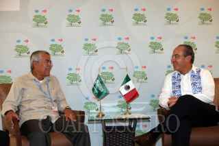 MUNICIPIO DE BENITO JUAREZ, QUINTANA ROO, 08DICIEMBRE2010.- Felipe Calderón Hinojosa, presidente de México, durante la reunión bilateral con el Primer Ministro del Petróleo de Arabia Saudita, Ibra Him-al Nahimi, que tuvo lugar en el hotel Moon Palace. FOTO: ARIEL GUTIERREZ/CUARTOSCURO.COM