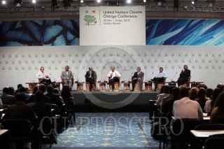 BENITO JUAREZ, QUINTANA ROO, 08DICIEMBRE2010.- Felipe Calderón Hinojosa, presidente de México, durante el dialogo de alto nivel "Keeping High Long Term Ambitions Against Climate Change" que tuvo lugar en el Cancún Messe. FOTO: ARIEL GUTIERREZ/CUARTOSCURO.COM