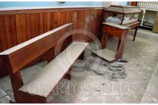 CONCEPCIÓN DEL ORO, ZACATECAS, 09DICIEMBRE2010.- Aspectos de los daños que sufrieron la notaria parroquial tras la explosión del día martes, los hechos ocurrieron por un descuido en el manejo de los juegos pirotécnicos que se utilizarían para las fiestas patronales de la Virgen de la Inmaculada Concepción. El incidente dejó como saldo la muerte de dos jóvenes y cuatro heridos. FOTO: ADOLFO VALTIERRA/CUARTOSCURO.COM