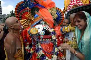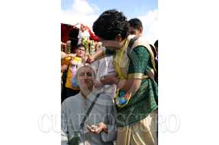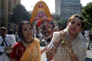 México, D. F. 15 Mayo 2004.-Miembros de la sociedad internacional para la consiencia Krishna se preparan para el desfile de carrozas Gigantes por calles de la ciudad de México. FOTO: Nelly Salas/CUARTOSCURO.COM