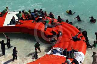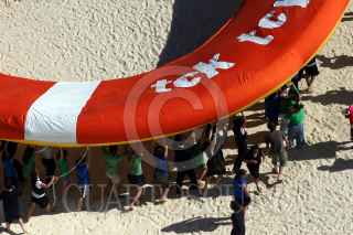 CANCUN, QUINTANA ROO, 10DICIEMBRE2010.- Acitivistas de greenpeace lanzaron al agua salvavidas en contra de el calentamiento global, en este que es el último dia de la cumbre para cambio cllimático cop 16. FOTO: AMARANTA PRIETO/CUARTOSCURO.COM