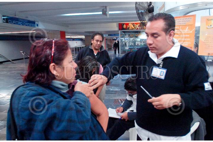 MÉXICO, D.F., 10DICIEMBRE2010.- Debido al intenso frio que se vive e la capital la secretaria de salud local inicio una campaña de vacunación contra la influenza en las principales estaciones del metro. FOTO: SAÚL LÓPEZ/CUARTOSCURO.COM