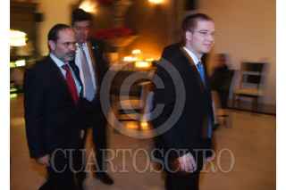 QUERÉTARO, QUERÉTARO, 11DICIEMBRE2010.- El Presidente del PAN Gustavo Madero, en rueda de prensa comentó que rumbo a las elecciones del 2011 “no se trata de una pasarela”, y que entorno a las alianzas con otros partidos estas solo se justifican cuando se busca eliminar los cacicazgos que ha creado el PRI. En la imagen le acompañan el líder del PAN en el Estado Ricardo Anaya, los senadores Eduardo Nava, Guillermo Tamborrel y el presidente municipal Francisco Domínguez. FOTO: DEMIAN CHÁVEZ/CUARTOSCURO.COM