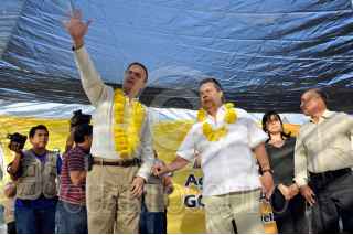 ACAPULCO, GUERRERO, 11DICIEMBRE2010.- Marcelo Ebrard Casaubón, jefe de Gobierno del Distrito Federal, acudió para apoyar a Ángel Aguirre, candidato por la Coalición “Guerrero Nos Une” al gobierno del estado, durante la gira de campaña política que realizaron por este municipio. FOTO: CUARTOSCURO.COM