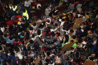 MEXICO, D.F., 12DICIEMBRE2010.- Miles de peregrinos intentan entrar a la Basílica de Guadalupe lo que provoca que personas se desmayen por los empujones. FOTO: RODOLFO ANGULO/CUARTOSCURO.COM
