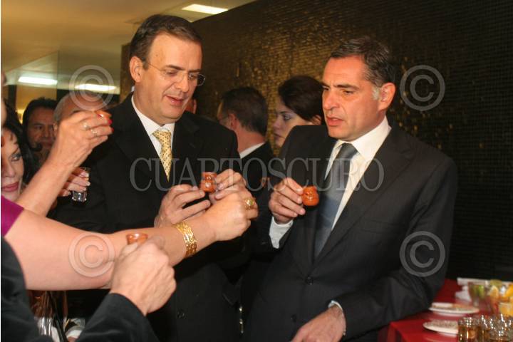 MÉXICO, D.F., 09DICIEMBRE2010.- Marcelo Ebrard, jefe de gobierno local recibe un disco de un cantante de mariachi zacatecano conocido como el "Rebelde" a la salida de la inauguración del museo del Tequila y el Mezcal en la plaza garibaldi. FOTO: SAÚL LÓPEZ/CUARTOSCURO.COM