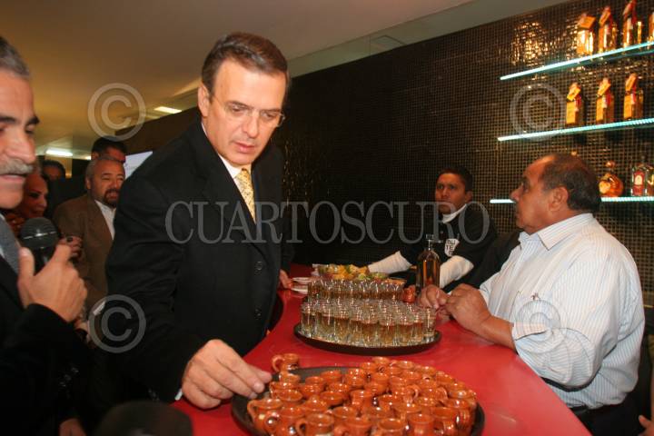 MÉXICO, D.F., 09DICIEMBRE2010.- Marcelo Ebrard, jefe de gobierno local recibe un disco de un cantante de mariachi zacatecano conocido como el "Rebelde" a la salida de la inauguración del museo del Tequila y el Mezcal en la plaza garibaldi. FOTO: SAÚL LÓPEZ/CUARTOSCURO.COM