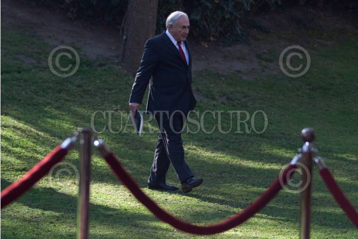 MÉXICO, D.F., 14DICIEMBRE2010.- Agustin Carstens Carstens, gobernador del Banco de México; Dominique Strauss-Kahn, director gerente del Fondo Monetario Internacional, y Felipe de Jesús Calderón Hinojosa, presidente de México; estuvieron presentes en la Residencia oficial de Los Pinos para anunciar la ampliación de crédito a México por 73 mil millones de dólares. FOTO: IVAN STEPHENS/CUARTOSCURO.COM