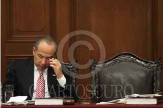 MÉXICO, D.F., 15DICIEMBRE2010.- El presidente Felipe Calderon durante el informe de Guillermo Ortiz Mayagoitia ministro presidente de la Suprema Corte de Justicia de la Nación. FOTO: RODOLFO ANGULO/CUARTOSCURO.COM