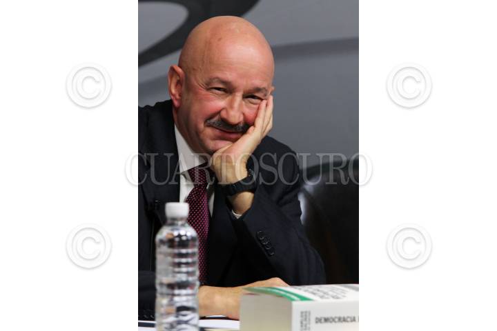 MEXICO, D.F., 15DICIEMBRE2010.- Salvador Camarena (derecha), periodista y conductor del programa radiofónico Hoy x Hoy, tercera edición, durante el programa Foro W organizado por la radiodifusora W Radio y quien a esta ocación estuvo de asistente Carlos Salinas de Gortari (izquierda), ex presidente de México (1988-1994). El ex presidente respondió preguntas del público asistente al foro y habló sobre su nuevo libro "Democracia Republicana, Ni Estado ni mercado una alternativa ciudadana". Esto se realizó en las instalaciones de esta radio al sur de la Ciudad de México. FOTO: MISAEL VALTIERRA/CUARTOSCURO.COM