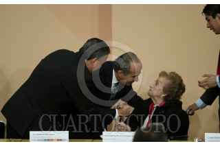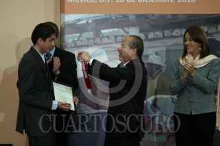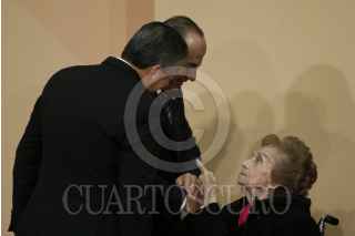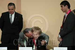 MÉXICO, D.F., 16DICIEMBRE2010.- José Ángel Cordova Villalobos, secretario de Salud y María de la Concepción Saviñón, ganadora del premio Nacional de Acción Voluntaria y Solidaria 2010 al termino de un acto que se realizó en el salón Adolfo López Mateos de la residencia Oficial de Los Pinos. FOTO: RODOLFO ANGULO/CUARTOSCURO.COM