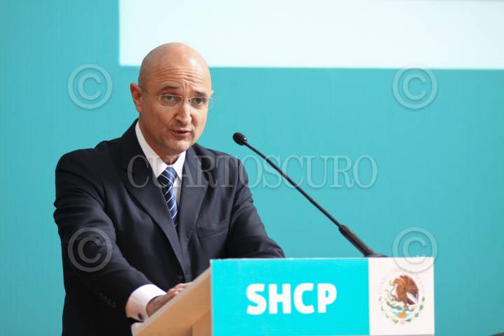 MÉXICO, D.F., 16DICIEMBRE2010.- José Andrés de Oteyza, Luis Alberto Harvey, saludaron a Luis Téllez, director de la Bolsea Mexicana de Valores, al finalizar la firma del acuerdo "tuafore, tuganancia" en el Palacio Nacional. FOTO: MOISÉS PABLO/CUARTOSCURO.COM
