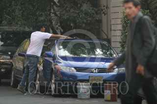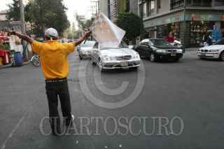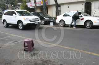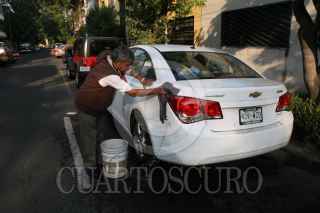 MÉXICO, D.F., 17DICIEMBRE2010.- En colonias como Roma y Condesa, franeleros trabajan apartando lugares y lavando coches, con lo cual se ganan unas monedas. FOTO: ISAAC ESQUIVEL/CUARTOSCURO.COM