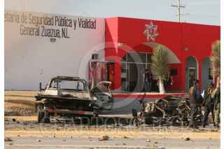 GENERAL ZUAZUA, NUEVO LEON, 17DICIEMBRE2010.- Un coche bomba dejado afuera de la Comandancia de la Policía de Zuazua explotó esta tarde causando lesiones en al menos dos civiles, así como daños en vehículos y en la sede policiaca. FOTO: MILENIO MONTERREY/CUARTOSCURO.COM