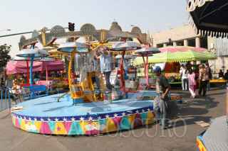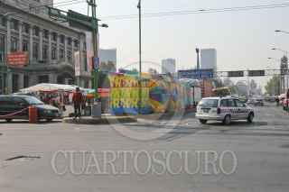 MÉXICO, D.F., 18DICIEMBRE2010.- Juegos mecánicos fueron colocados sobre uno de los carriles de avenida Hidalgo, en la llamada romería navideña. Sin embargo, las escenografías con Santa Clos para tomarse la foto aún no se instalan. FOTO: ISAAC ESQUIVEL/CUARTOSCURO.COM