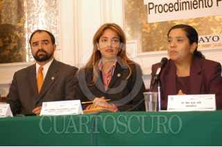 México, D.F. 17 MAYO 2004.- Emilio Álvarez Icaza, presidente de la Comisión de Derechos Humanos del DF, Lorena Villavicencio, presidenta de la comisión de Gobierno de la ALDF, e Irma Islas Leónla presidenta de la Comisión de Seguridad Pública durante la instalación de la mesa de Análisis y Discusión para la Reforma Integral de Procedimientos Penales. FOTO: /CUARTOSCURO.COM