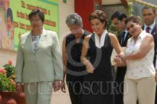 México, D. F. 17 Mayo 2004.- La señora Marta Sahagún de Fox, a su llegada a la escuela Manuel Eduardo Gorostizza, donde se brindo un reconocimiento a mujeres líderes en educación. La acompañan Beatriz Oregeta, Elena Rebelo y Silvia Salazar. FOTO: Nelly Salas/CUARTOSCURO.COM