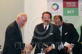 MÉXICO D.F., 20DICIEMBRE2010.- Juan Molinar Horcasitas, Secretario de Comunicaciones y Transportes (SCT) acompañado de Sthepen T. Oniel, Director de Boing Satelite, dio a conocer la adjudicación a Boeing Defense un contrato de mil 31.8 mdd para la fabricación de tres satélites para el sistema mexicano de comunicaciones. FOTO: GUILLERMO PEREA/CUARTOSCURO.COM