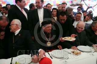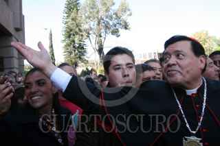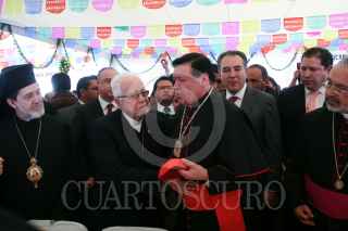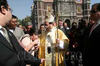 MÉXICO D.F. 21DICIEMBRE2010.- Norberto Rivera Carrera, Arzobispo Primado de México, oficio una misa por el 25 Aniversario de su Ordenación Episcopal, esto en la Basílica de Guadalupe. Al final de la homilía comió con sus invitados y saludo a los feligreses que lo acompañaron en su fetesjo. FOTO: GUILLERMO PEREA/CUARTOSCURO.COM