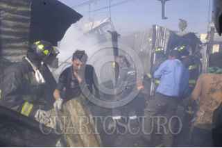 MEXICO, D.F., 21DICIEMBRE2010.- Veinte casas de madera y lamina de un asentamiento irregular se incendiaron al parecer por un corto circuito en las calles de Colector 13 y Politécnico, en la colonia Lindavista, donde docenas personas fueron desalojadas. FOTO: LUIS CARBAYO/CUARTOSCURO.COM