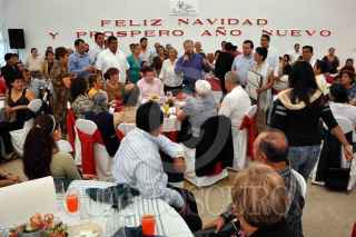 VILLAHERMOSA, TABASCO, 21DICIEMBRE2010.- Andrés Granier Melo, gobernador de Tabasco, realizo un convivió con vecinos que habitan en la colonia donde se ubica la casa de gobierno local "Quinta Grijalva", donde los regalos sorpresas no se hicieron esperar. El gobernante disfrutó con los lugareños de una comida de fin de año y aprovechó para desear una navidad y feliz año nuevo. FOTO: CUARTOSCURO.COM