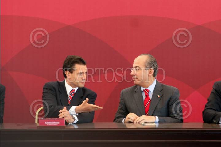 ECATEPEC, EDO. DE MÉX. 22DICIEMBRE2010.- Felipe Calderón Hinojosa, Presidente de México, acompañado de Enrique Peña Nieto, Gobernador del Estado de México, Alonso Lujambio, titular de la Secretaria de Educación Publica y Francisco Blake Mora, Secretario de Gobernación, encabezo la ceremonia cívica por el 195 Aniversario Luctuoso del Generalísimo, José María Morelos, esto en la Casa Ecatepec de Morelos. FOTO: GUILLERMO PEREA/CUARTOSCURO.COM