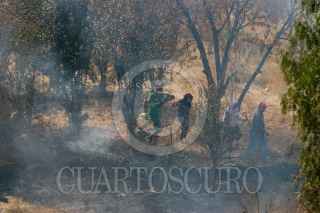 MÉXICO, D.F., 26DICIEMBRE2010.- Vecinos de la colonia San Miguel Teotongo, apagan con cubetas de agua un incendio forestal del cerro Sierra Santa Catarina ubicado un los limites de las delegaciónes Iztapalapa y Tlahuac. FOTO: SAÚL LÓPEZ/CUARTOSCURO.COM
