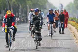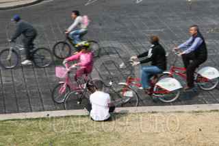 MÉXICO, D.F., 26DICIEMBRE2010.- A pesar del frío y la contaminación, decenas de capitalinos acudieron en bicicleta, patines, patineta o simplemente caminando al último ciclotón del año sobre avenida Reforma. FOTO: ISAAC ESQUIVEL/CUARTOSCURO.COM