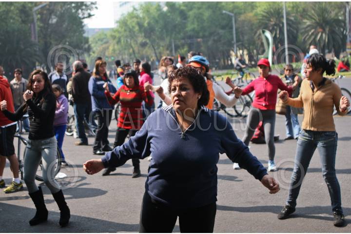 MÉXICO, D.F., 26DICIEMBRE2010.- A pesar del frío y la contaminación, decenas de capitalinos acudieron en bicicleta, patines, patineta o simplemente caminando al último ciclotón del año sobre avenida Reforma. FOTO: ISAAC ESQUIVEL/CUARTOSCURO.COM