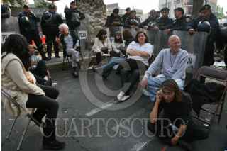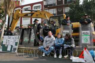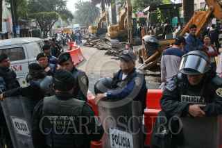 MÉXICO, D.F., 27DICIEMBRE2010.- Vecinos de la colonia Narvarte fueron replegados por elementos de la Secretaría de Seguridad Pública, sobre la avenida Diagonal San Antonio, donde los vecinos mantenían un plantón para evitar la construcción del paradero de la línea 3 del Metrobus. FOTO: ISAAC ESQUIVEL/CUARTOSCURO.COM